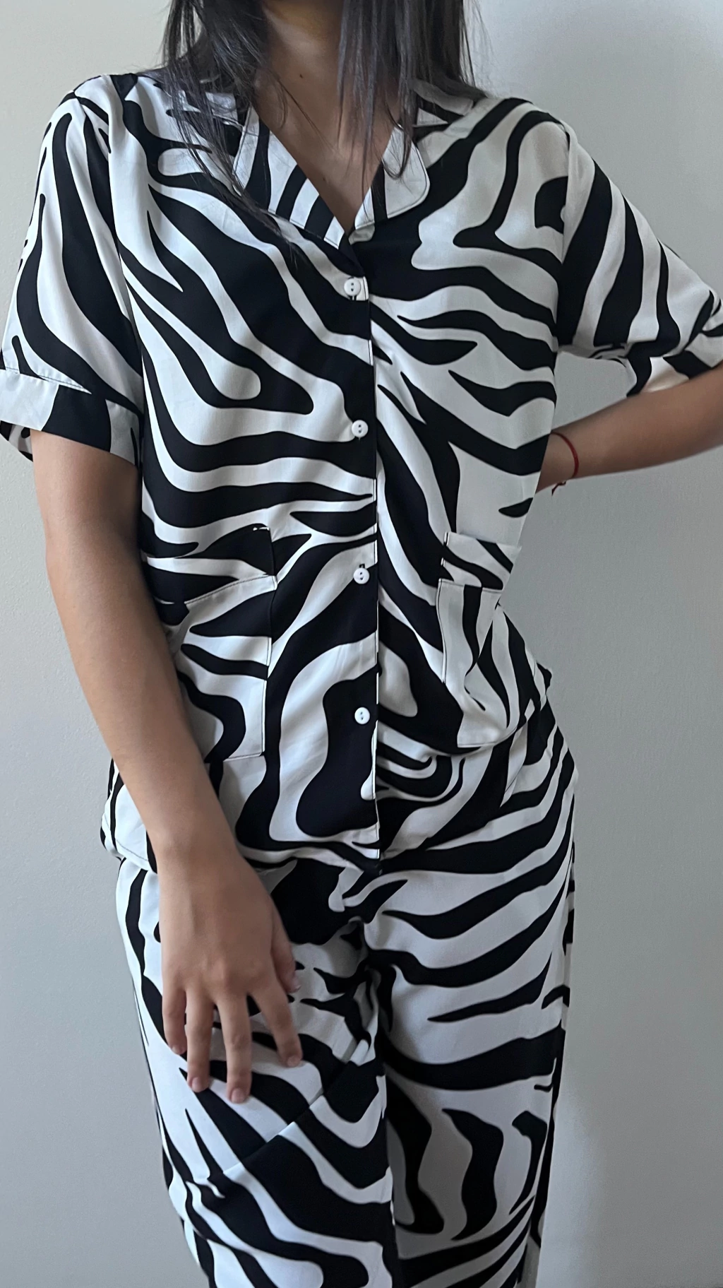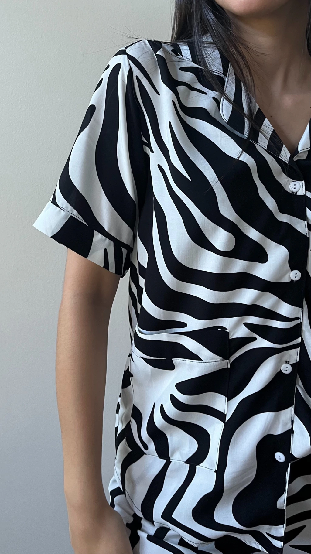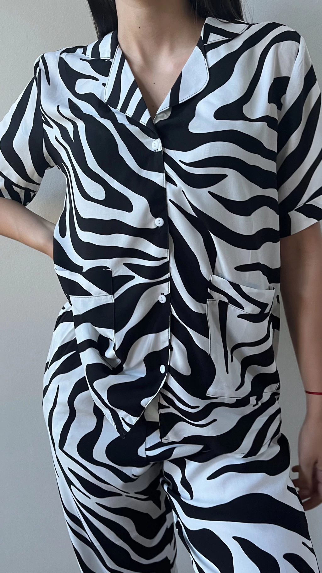 Conjunto de camisa manga corta y pantalon con bolsillos, cintura elastizada y cinta ajustable.