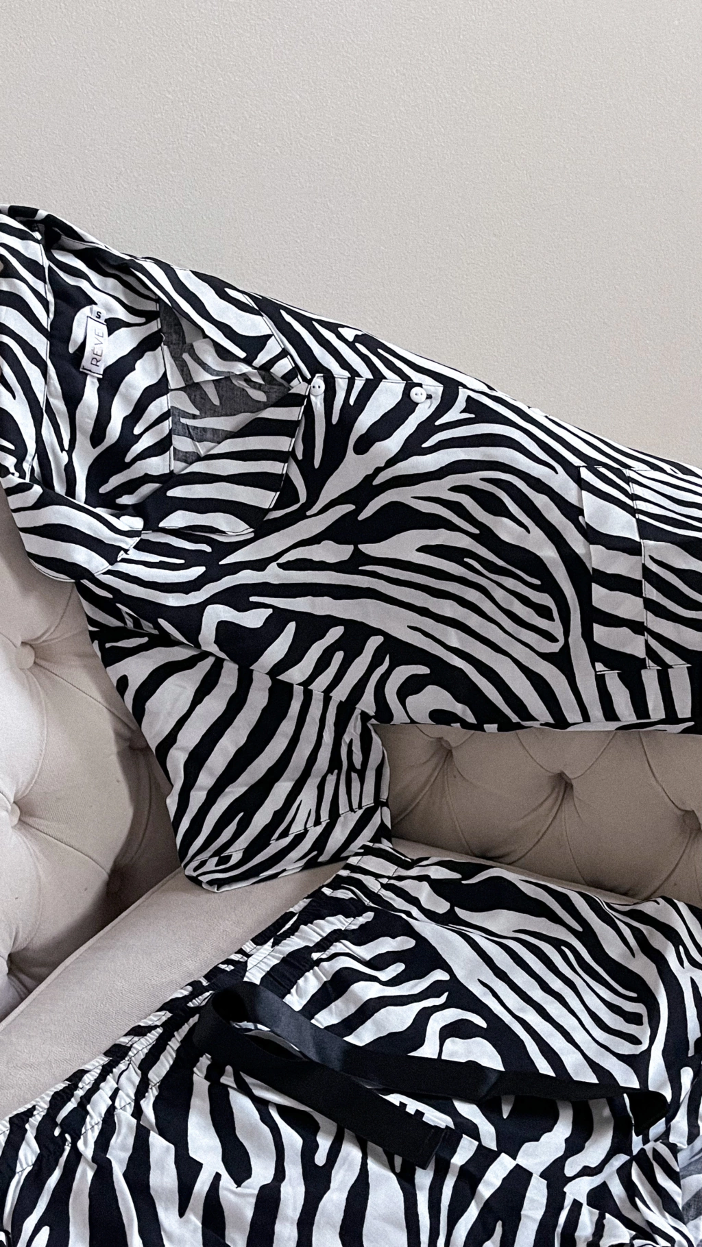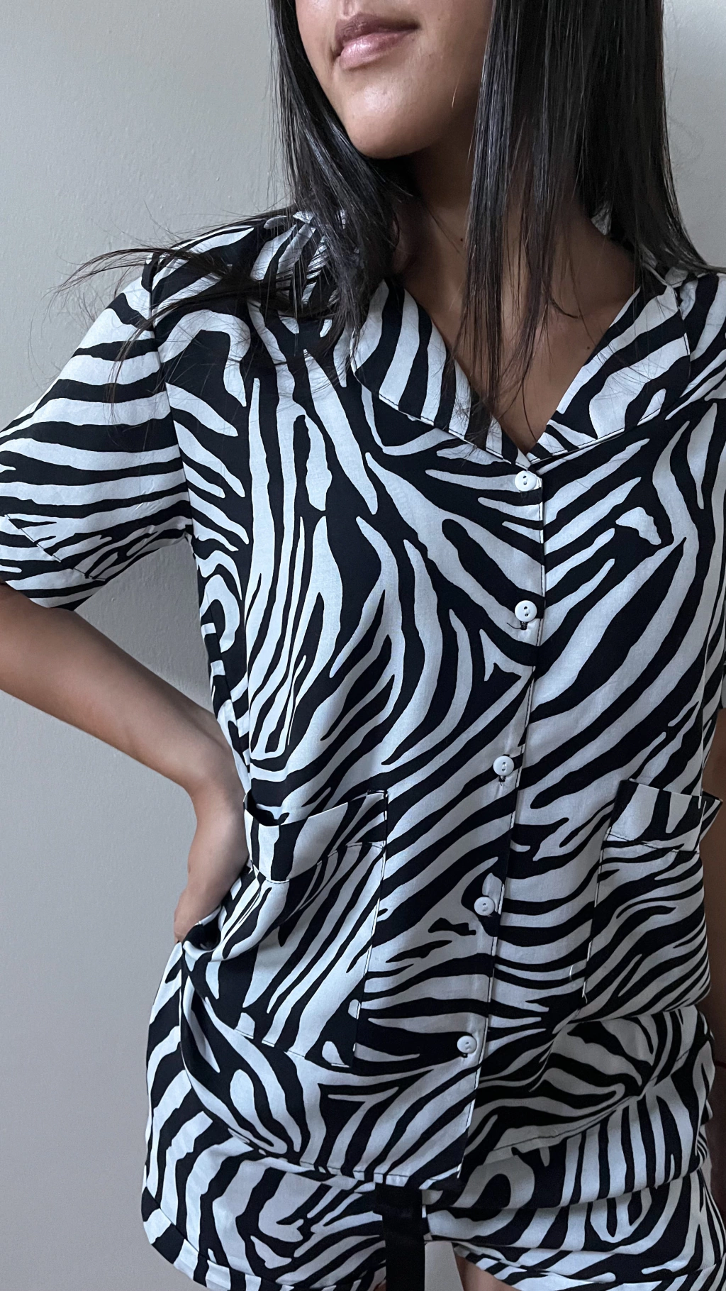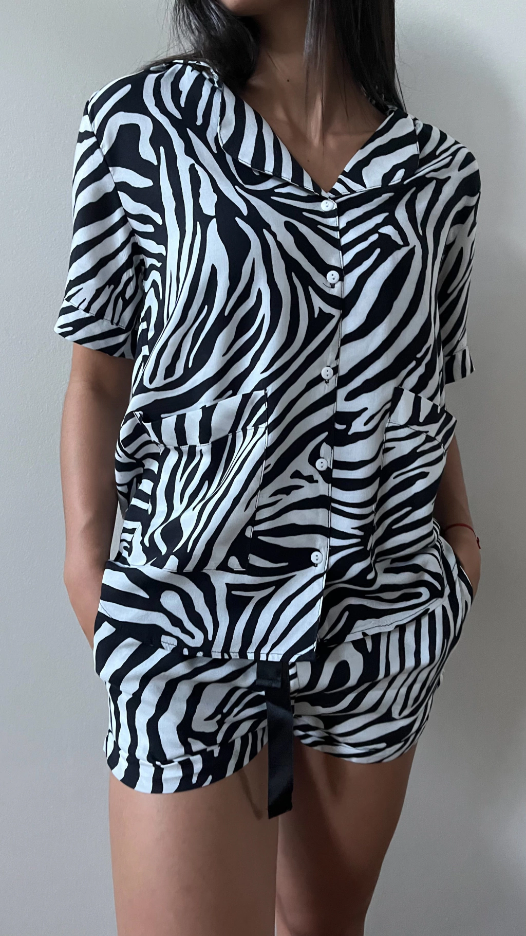 Conjunto de camisa y short con bolsillos, cintura elastizada y con cinta ajustable.